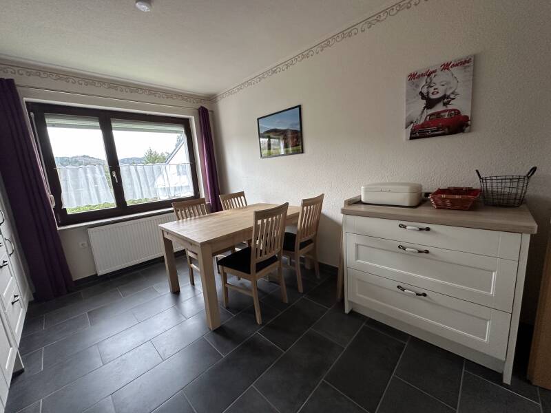 Entdecken Sie unsere voll ausgestattete Küche, die keine Wünsche offen lässt. Hier finden Sie alles, was Sie für die Zubereitung köstlicher Mahlzeiten für bis zu 7 Personen benötigen – ideal für gemütliche Abende nach einem ereignisreichen Tag in der Eifel.
